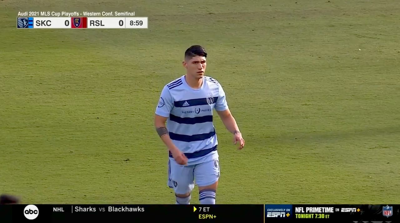El delantero del Sporting Kansas City probó suerte al cobrar un tiro libre, pero el cancerbero de Real Salt Lake, David Ochoa, estuvo atento y evitó la anotación.