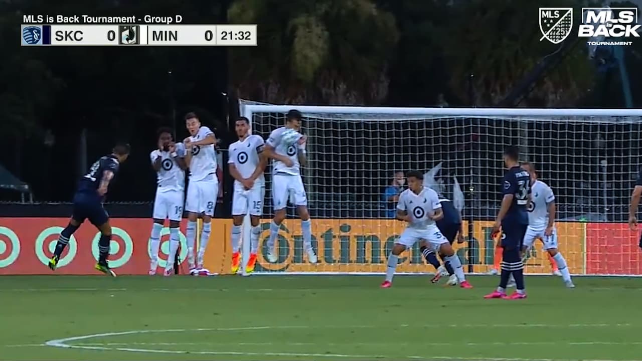 Alan Pulido noquea al defensa José Aja con un potente disparo de tiro libre