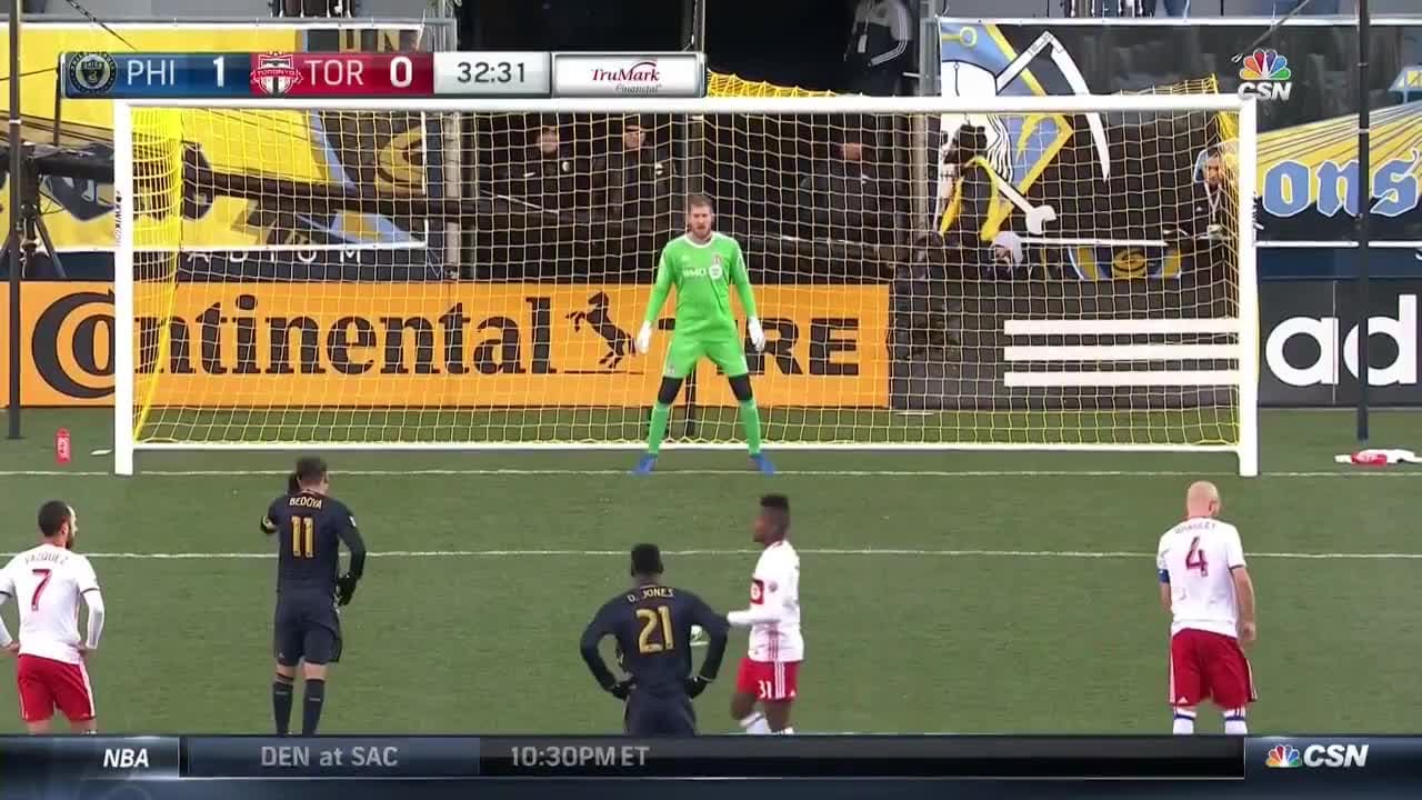 El volante del Philadelphia Union le pegó muy arriba y se perdió la chance de aumentar el marcador para su equipo.