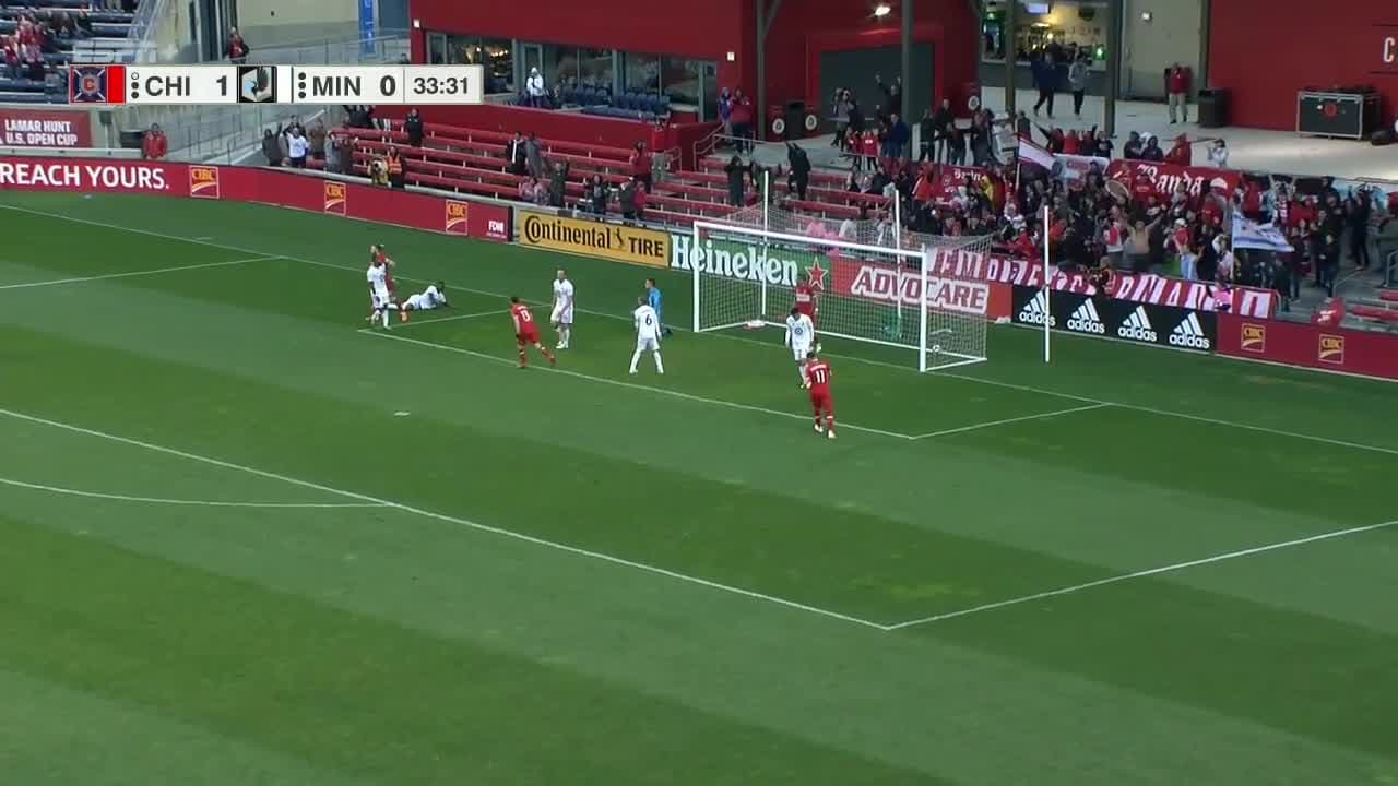 Aleksandar Katai soprende a defensas y fusila la portería rival con el segundo de Chicago