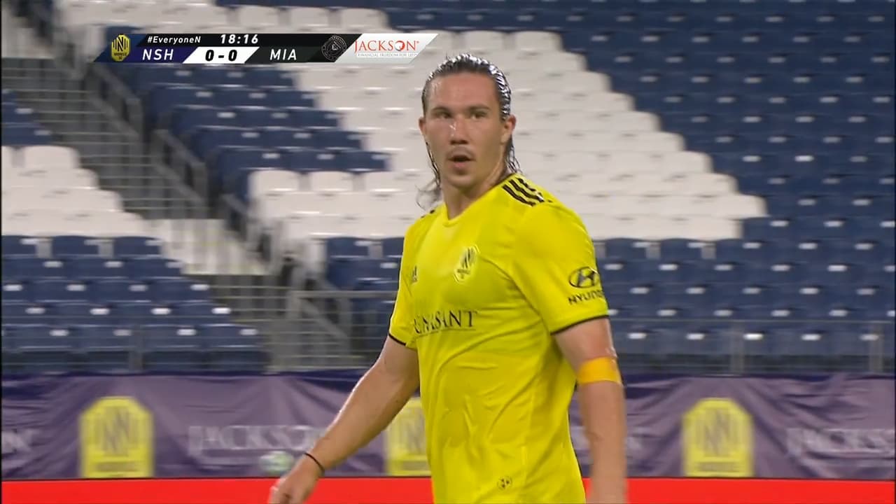 El colegial Rosendo Mendoza acudió al VAR y anuló la anotación de Nashville SC ante Inter Miami por una falta en el corazón del área.