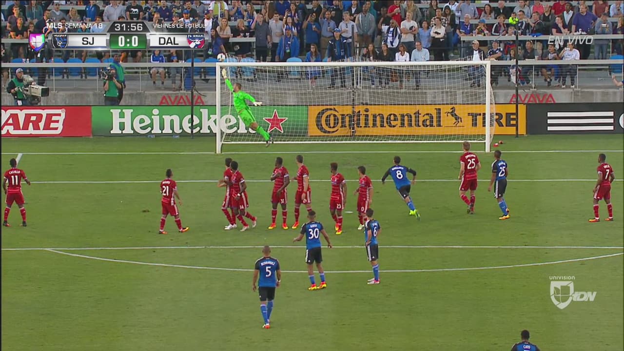 El jugador de SJ Earthquakes estuvo muy cerca de anotar el primero de tiro libre pero su disparo fue a dar al poste