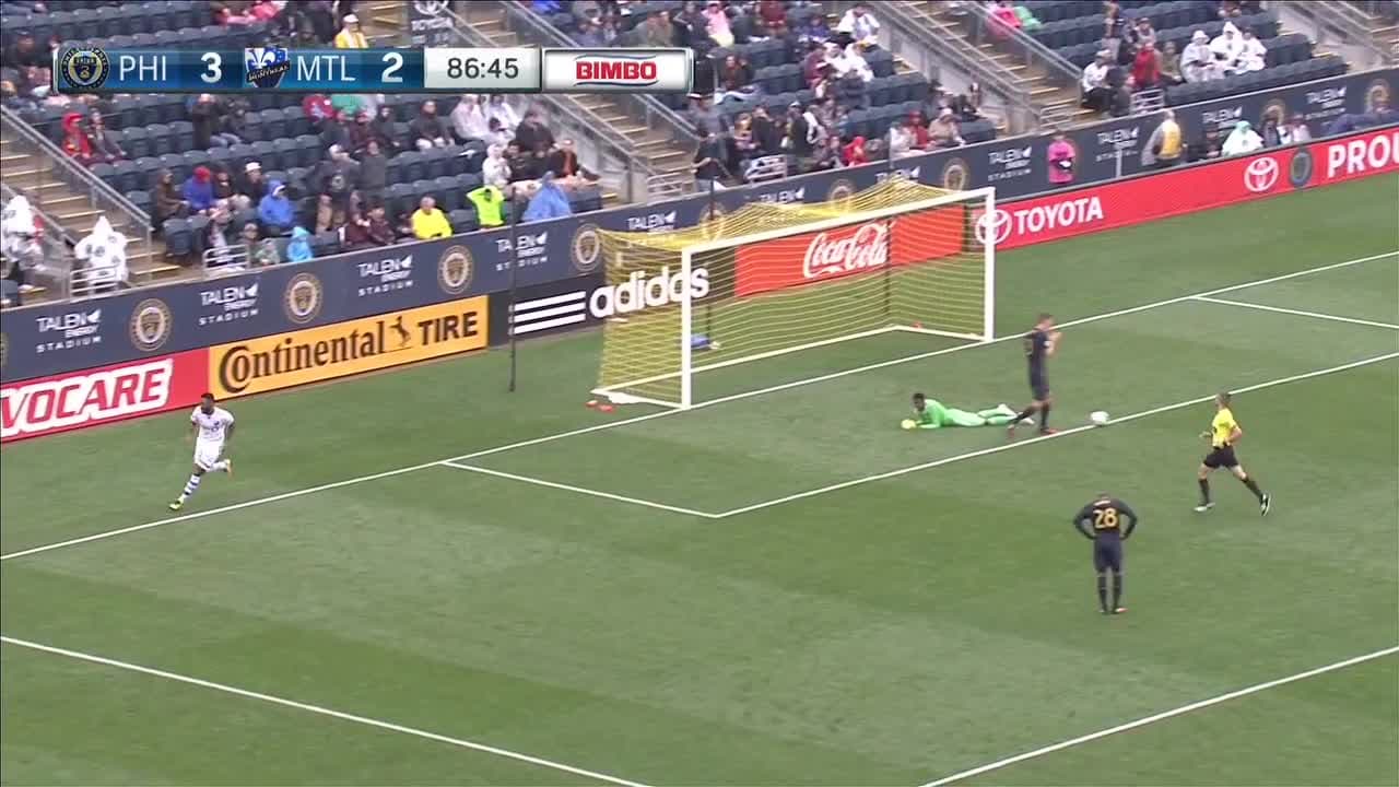 El delantero aprovecha el rebote que dejó el arquero Andre Blake para marcar el 3-3 definitivo entre el Montreal Impact y Philadelphia Union