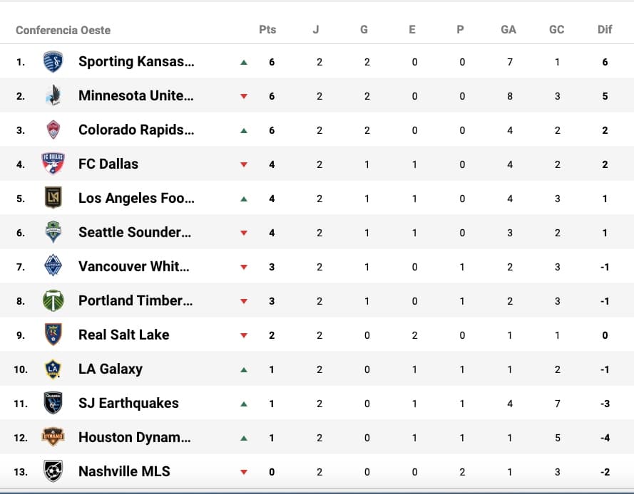 El segundo peldaño está lleno de lógica: con 4 puntos encontramos a FC Dallas, Seattle Sounders y LAFC. El equipo 'Negro y Oro' protagonizó un electrizante empate 3-3 frente a Philadelphia Union, en el partido en el que Carlos Vela celebró su gol número 50 en Major League Soccer.