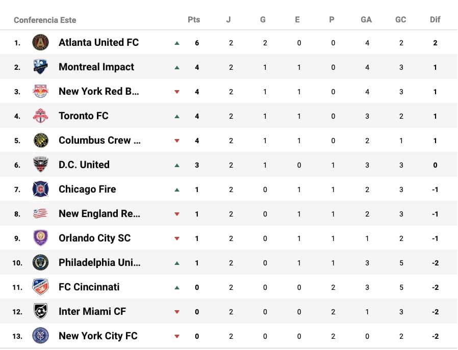 En tanto, 'Chicharito' Hernández no consigue todavía dejar su huella en LA Galaxy, Atlanta muestra buen nivel, pese a la baja de Josef Martínez, y New York City FC no se parece al conjunto que el año pasado finalizó primero en la Conferencia Este.