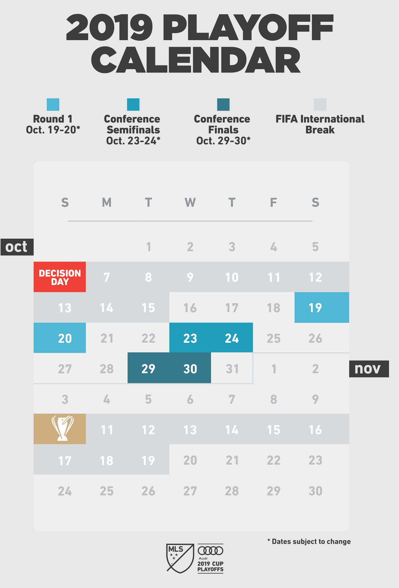 Así será el calendario de partidos de Playoffs hacia la MLS Cup de 2019