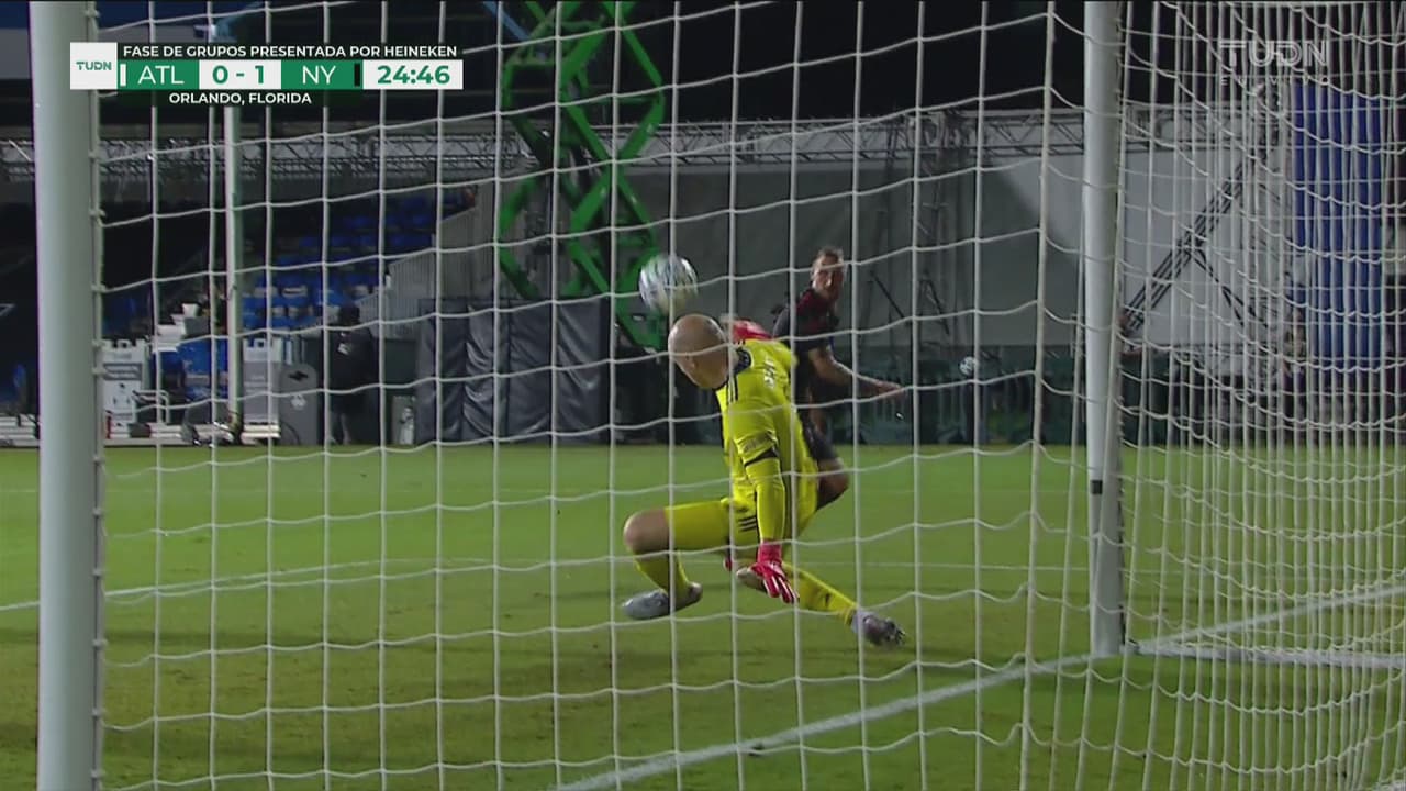 El austriaco le ganó la espalda a los defensores e intentó un remate, pero el portero evitó la anotación con grandes reflejos.