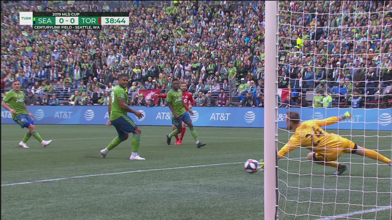 ¡Atajadón de Stefan Frei! Abajó donde duele, saca el balón y salva a Seattle