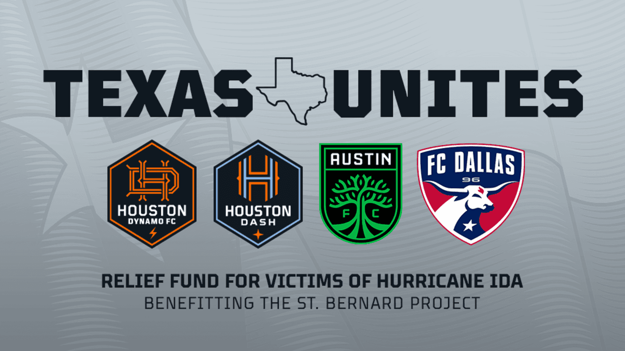 Austin FC, FC Dallas y Houston Dynamo FC -así como también el Houston Dash de la NWSL- se han agrupado para lanzar la campaña de recaudación de fondos 'Texas Unites'. La misma estará vigente hasta el 18 de sepriembre y lo recaudado será destinado a SBP, una organización sin fines de lucro en St. Bernard Parrish, Louisiana, que tiene por misión reconstruir hogares rápidamente después de desastres naturales al movilizar innovaciones del sector privado y asignando un único punto de contacto para hacer el proceso de reconstrucción más veloz y más predecible.