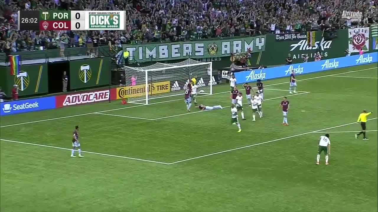 En un intento por despejar un tiro de esquina cobrado por el MVP del 2017, Diego Valeri, el central de los Colorado Rapids hunde la pelota en propia meta para el 1-0 en contra.