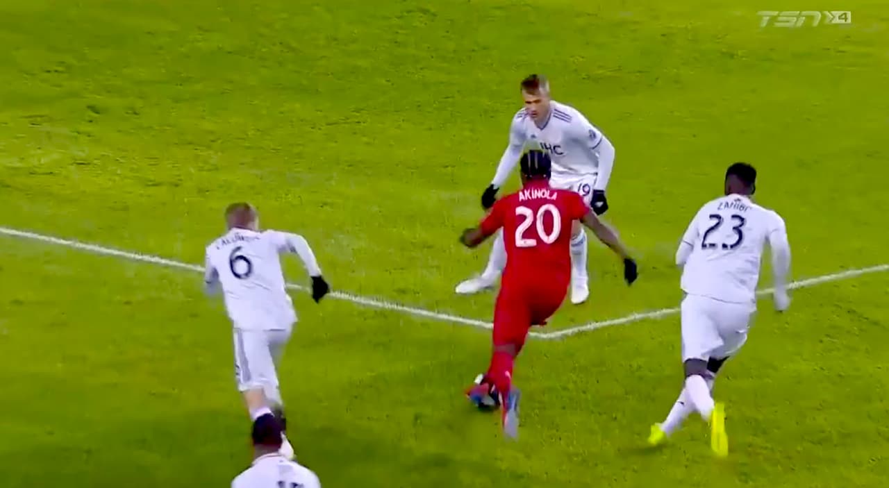El americano Ayo Akinola burló a tres rivales y con un potente disparo de pierna derecha venció al cancerbero para hacer el primer gol de Toronto.