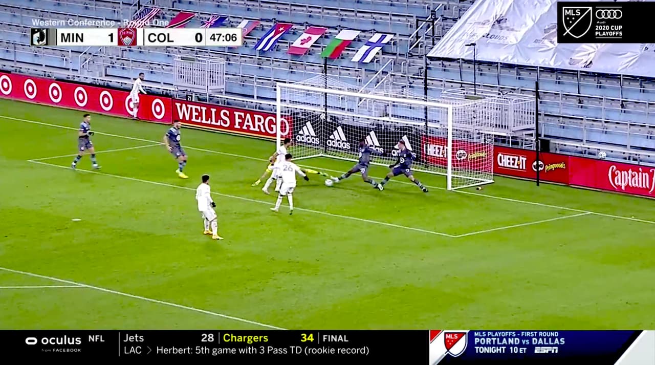 Cole Bassett tuvo una oportunidad de oro para empatar el marcador, pero el defensa Bakaye Dibassy evitó la anotación.