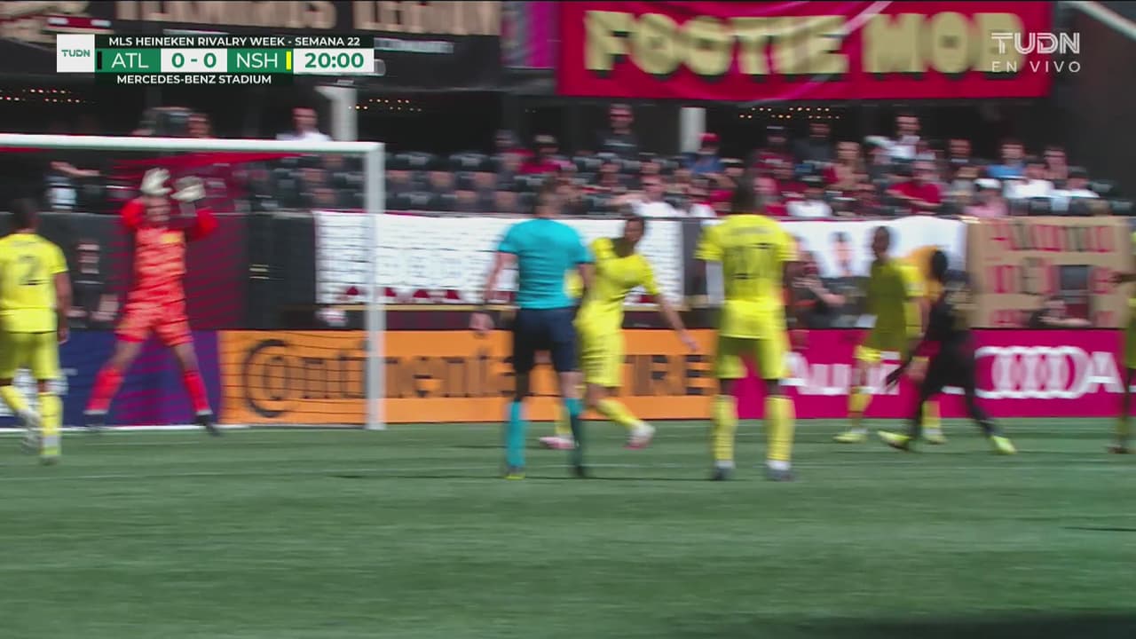 Ambos jugadores se encontraban en el área y George la manda por arriba, al minuto 20.