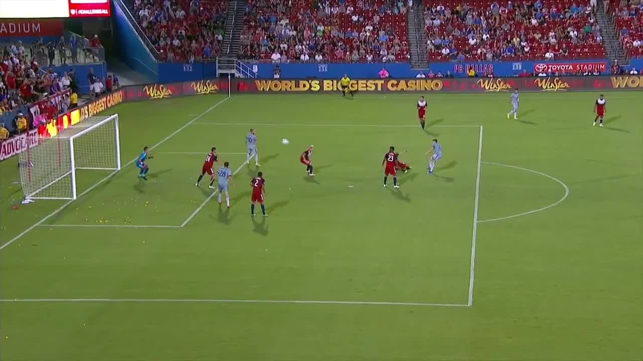 Un mal despeje de la defensa del FC Dallas, sirve la pelota para que el jugador estadounidense le pegue con la pierna derecha y acerque a su equipo 3-1