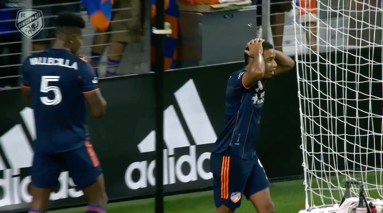 FC Cincinnati estuvo muy cerca de abrir el marcador, el brasileño Brenner no pudo definir en el corazón del área.