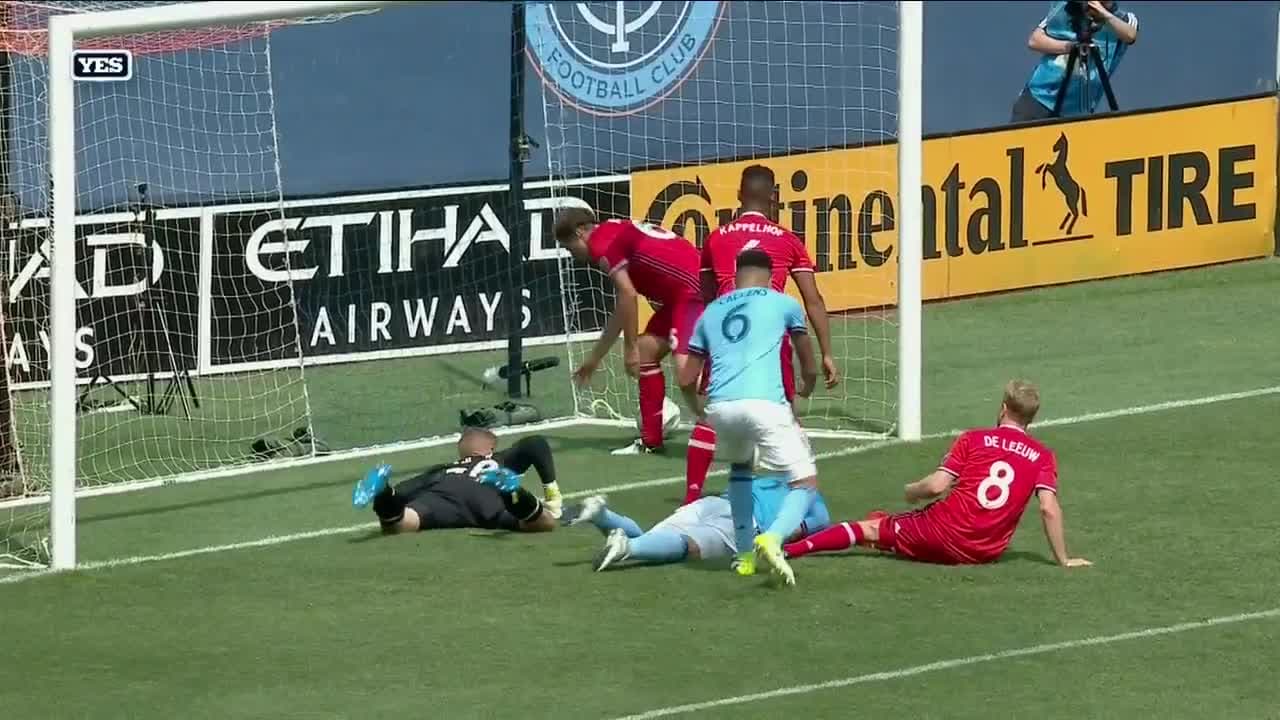 Brutal patada en la cabeza para el defensa de NYCFC Frederic Brillant por marcar un gol