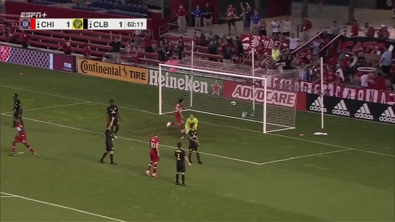 El delantero se coloca en posición válida y define el 2-1 para el 'Fire' sobre Columbus Crew, con su noveno gol de la temporada.