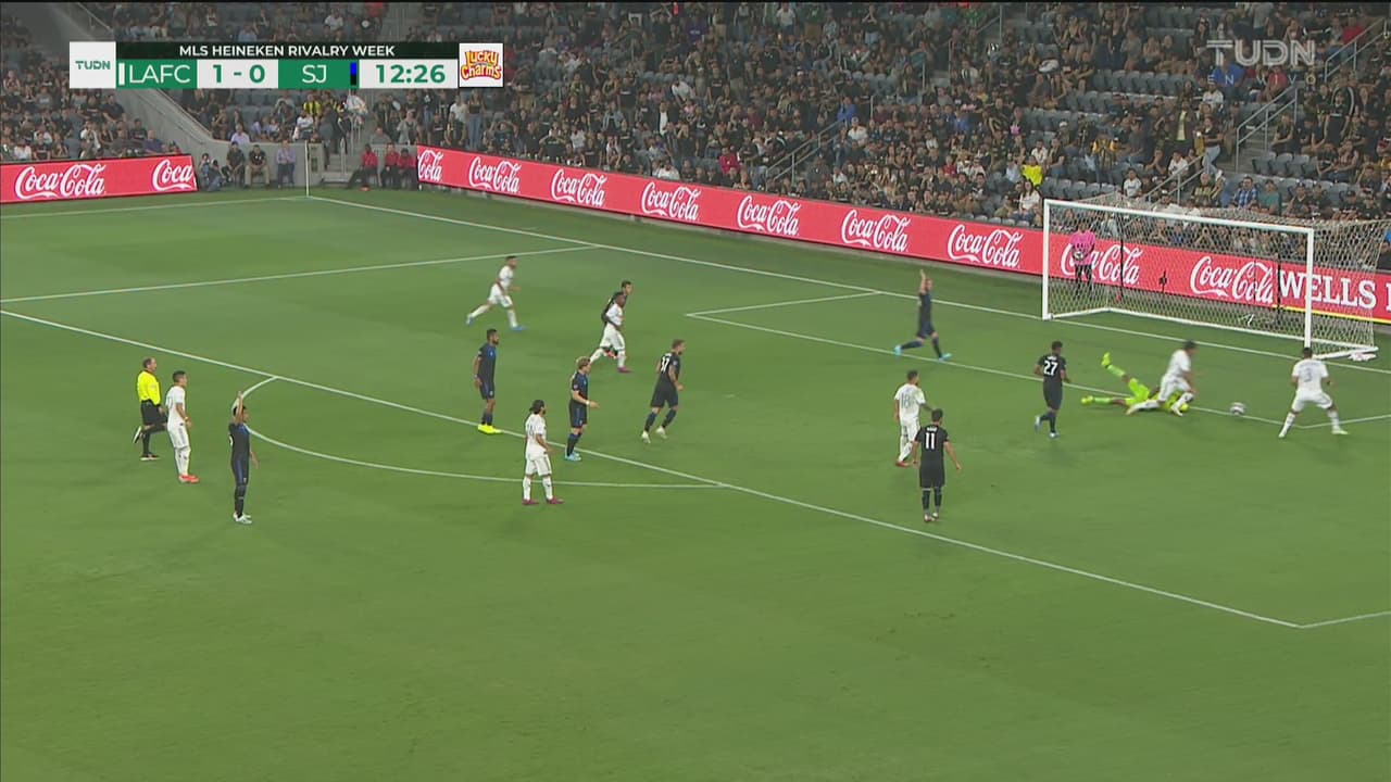 El goleador de LAFC cayó en el área luego de un toque sutil del portero de SJ Earthquakes. El árbitro dejó seguir la acción.