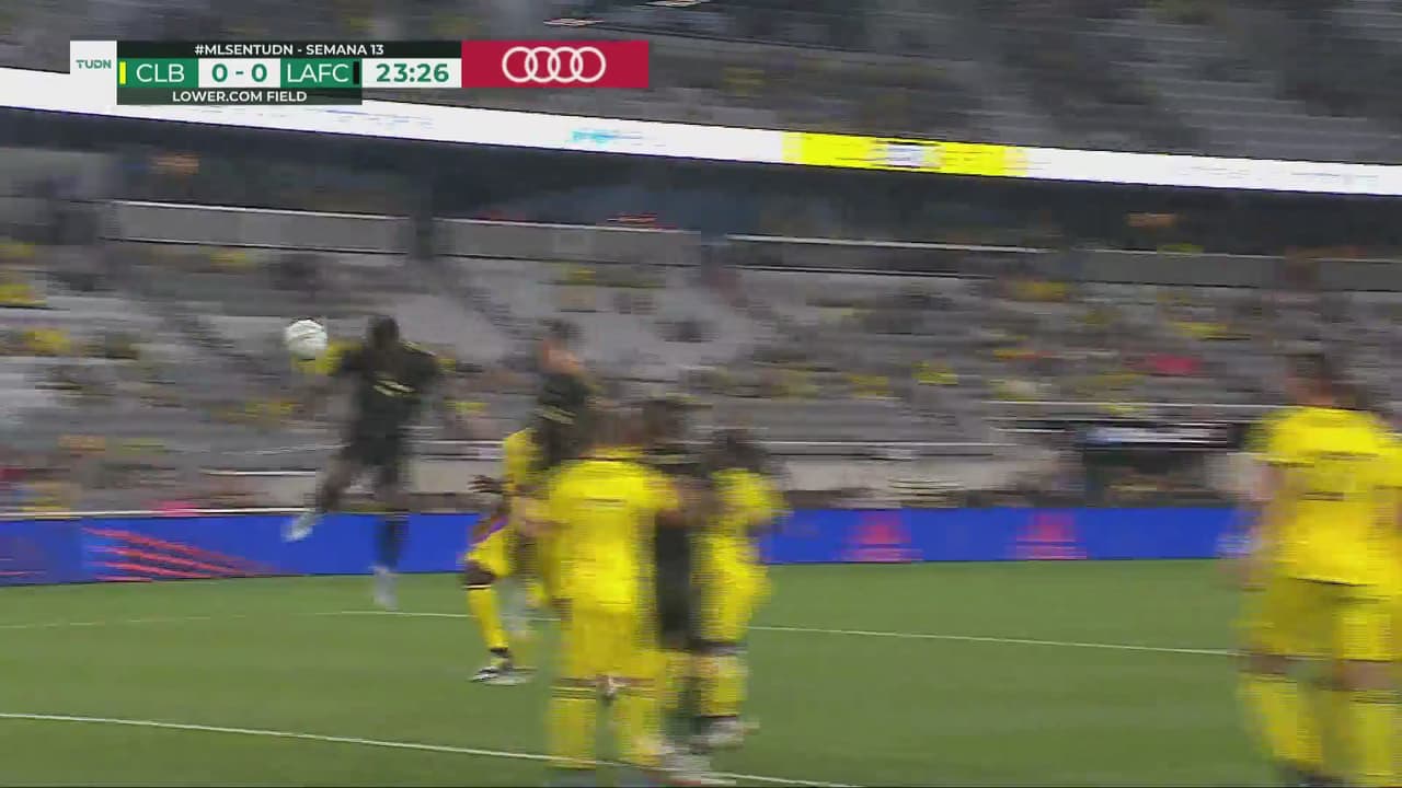 El senegalés gana por el aire, pero en un tiempo la pelota le queda abajó y no la puede clavar, al 24'.