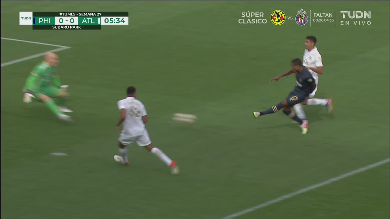 El delantero de Philadelphia se perfiló frente al arco y el arquero se lució con su achique al 4’.