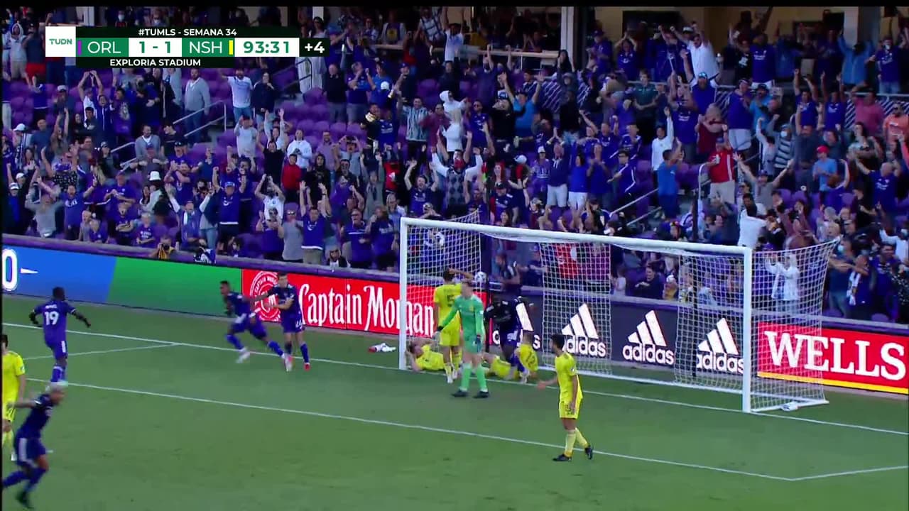 Alexandre Pato (Orlando City SC) remata al travesaño| Disparo con la derecha desde fuera del área de tiro libre directo.