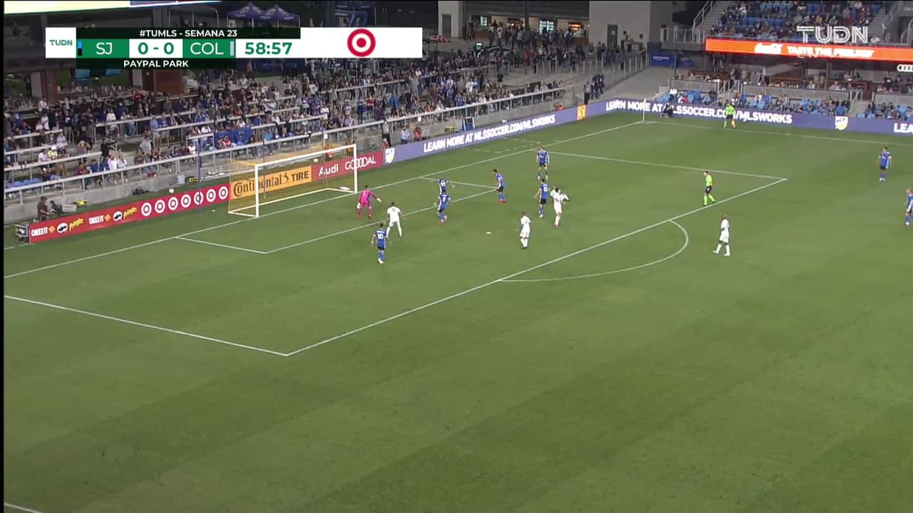 Cole Bassett (Colorado Rapids) remata poste| remate con la izquierda desde el centro del área.