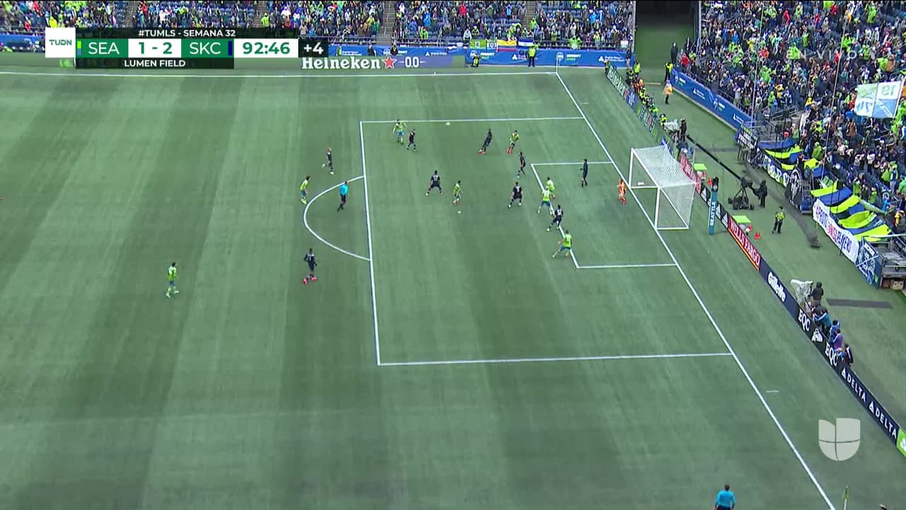 Cristian Roldan (Seattle Sounders FC) remata al travesaño| Disparo con la derecha desde el centro del área.