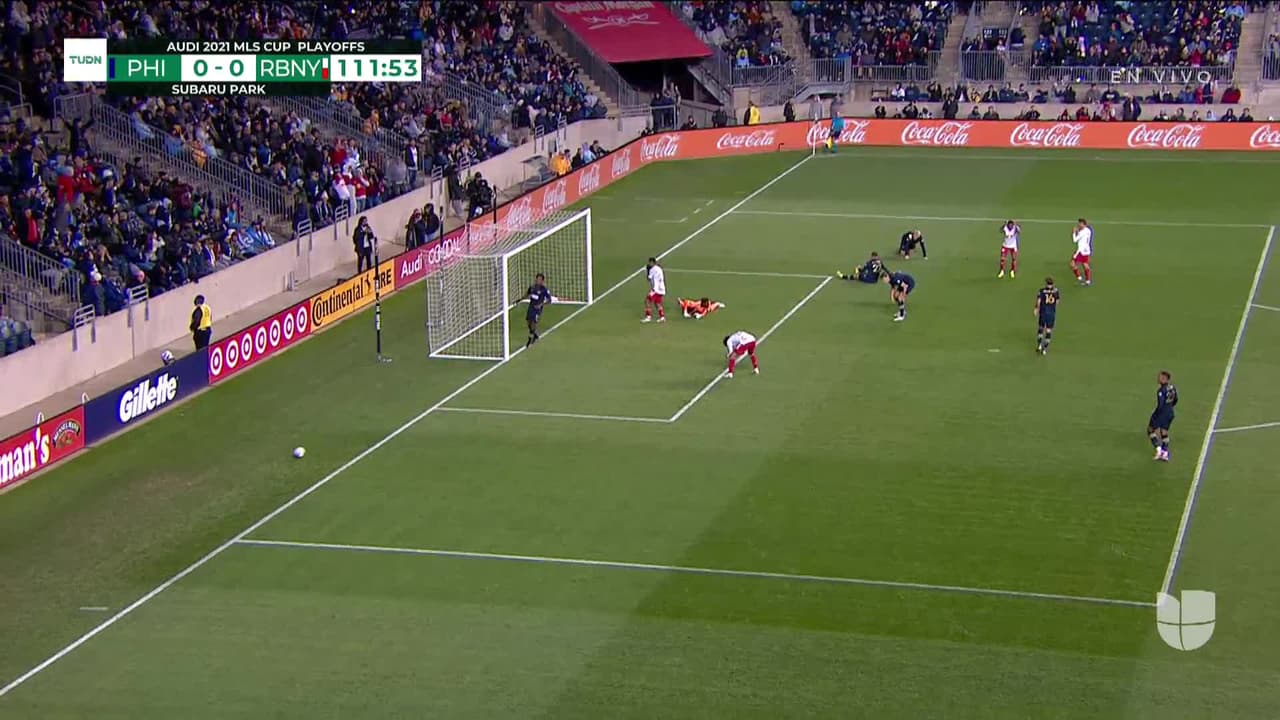 Kyle Duncan (New York Red Bulls) remata al poste izquierdo| Disparo con la derecha desde el centro del área. Asistencia de Patryk Klimala.