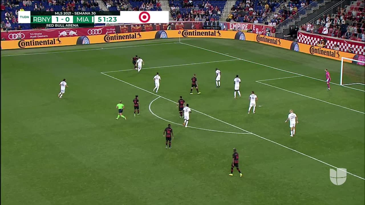 Patryk Klimala (New York Red Bulls) remata al travesaño| Disparo con la derecha desde el centro del área. Asistencia de Omir Fernandez.