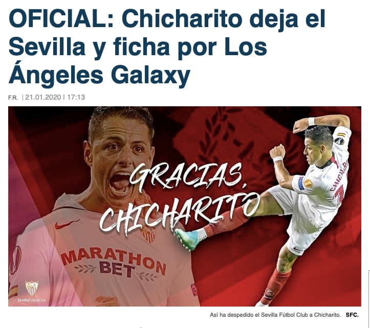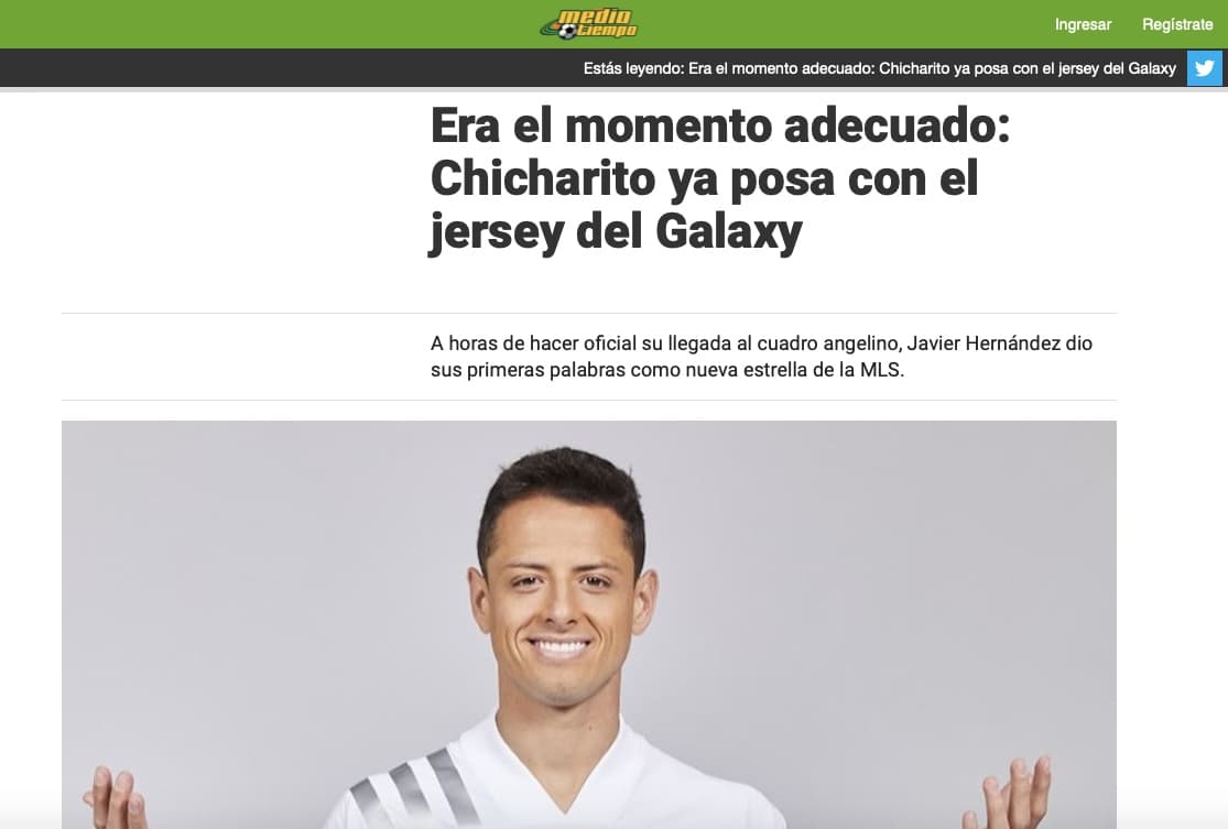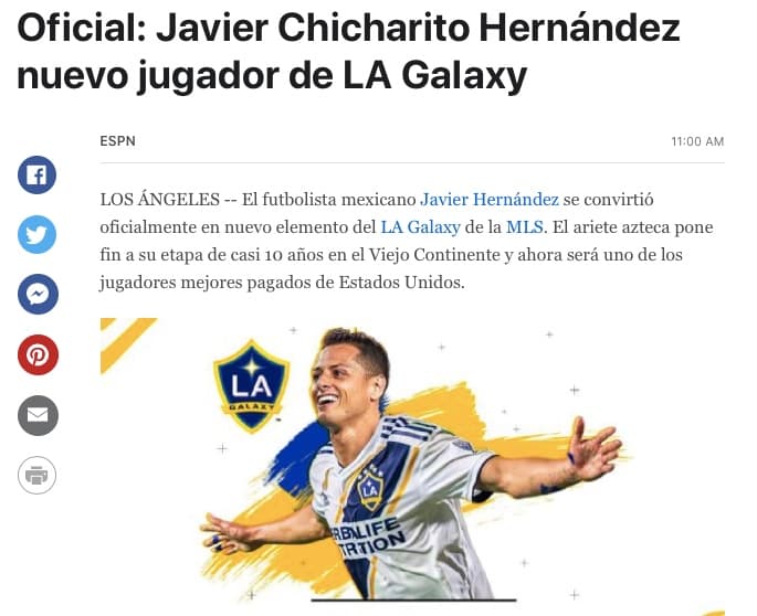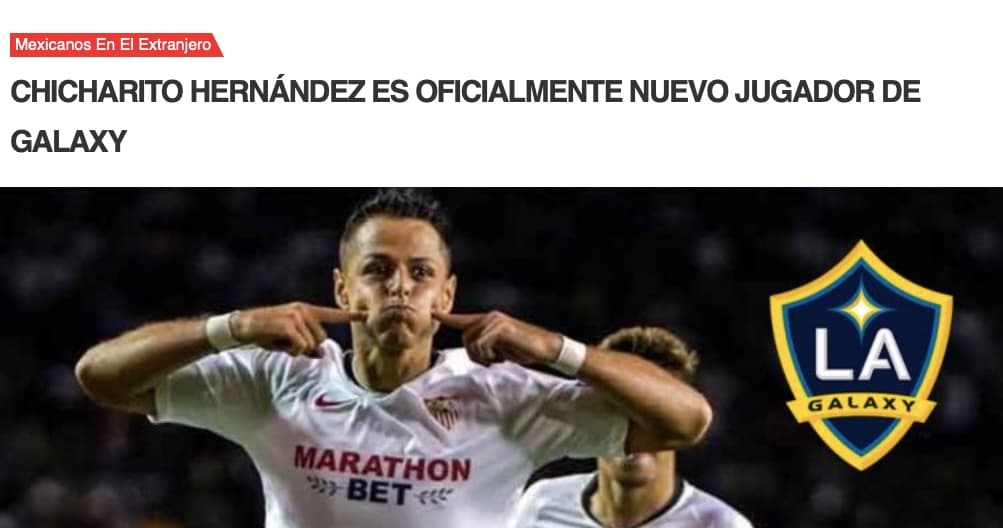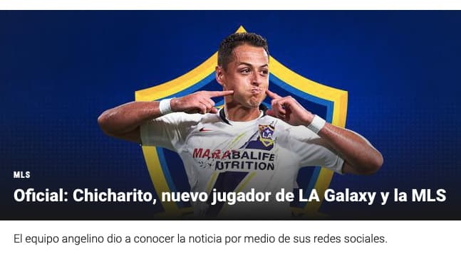 "Oficial: Chicharito, nuevo jugador de LA Galaxy y MLS", tituló TUDN.com al dar a conocer la novedad.
