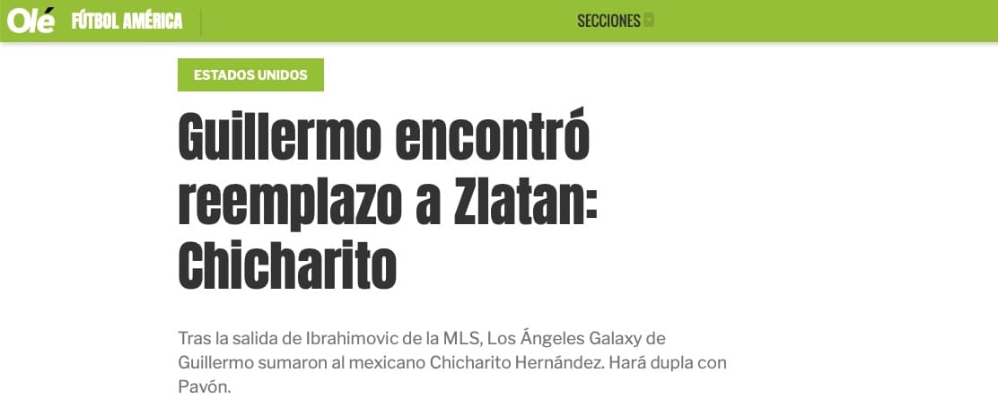 La novedad llegó también a Argentina, donde el periódico deportivo Olé vio las cosas con el prisma de los colores de Boca Juniors: "Guillermo encontró reemplazo a Zlatan: Chicharito".
