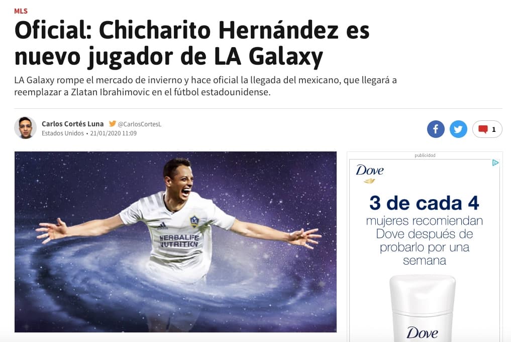 En su versión mexicana, AS fue más tradicional: "Chicharito Hernández es nuevo jugador de LA Galaxy".