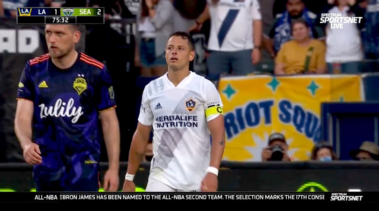 LA Galaxy intentó empatar el marcador ante Seattle Sounders con un pase filtrado para Javier Hernández, pero el cancerbero Stefan Cleveland estuvo atento y evitó el peligro en su arco.