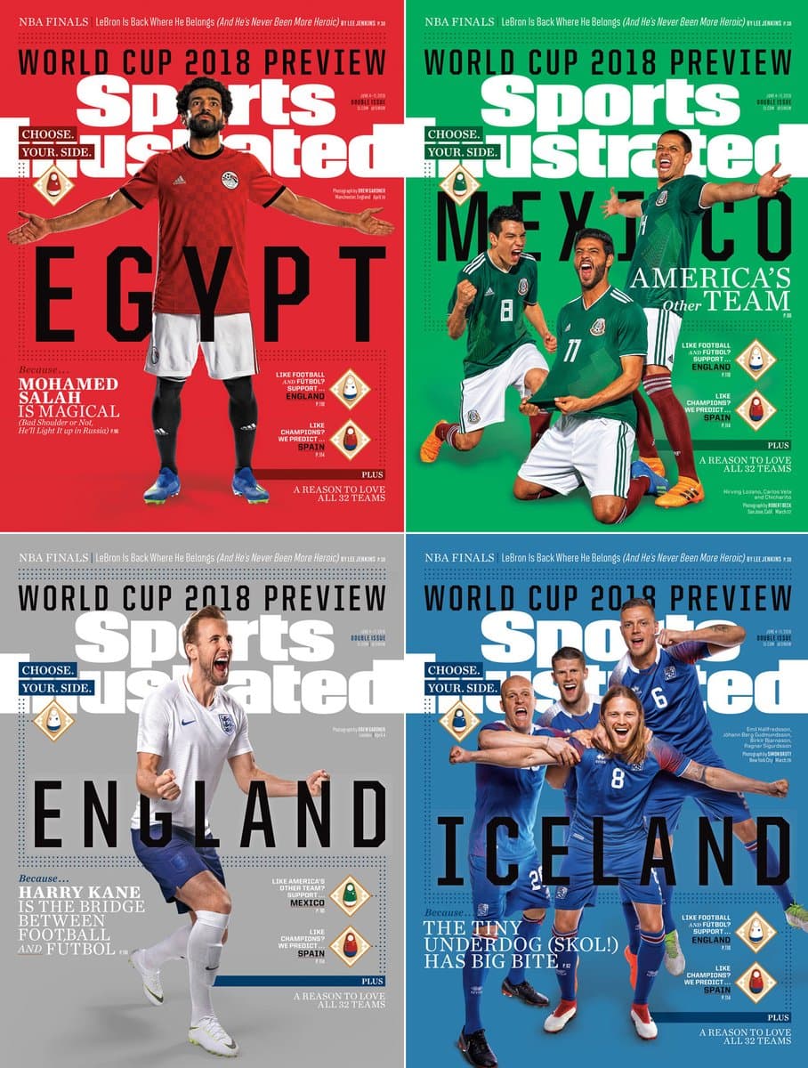 La que representa a la selección mexicana es una de las cuatro portadas de la reseña previa a la Copa del Mundo que presenta Sports Illustrated. Los otros ejemplos incluyen a Mohamed Salah de Egipto, Harry Kane y la selección de Inglaterra, y varios integrantes del equipo nacional de Islandia.