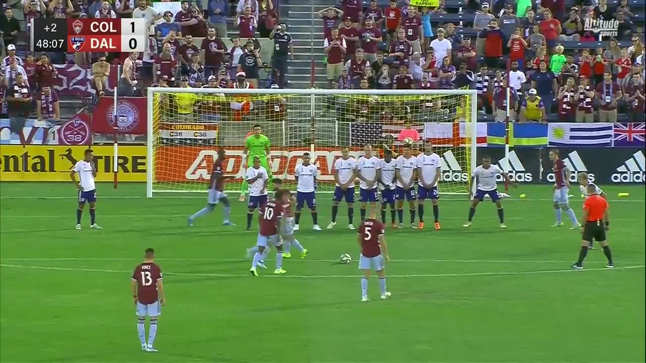 El delantero de los Rapids, saca el remate paralelo a la barrera y consigue el 2-0 en casa sobre el FC Dallas.