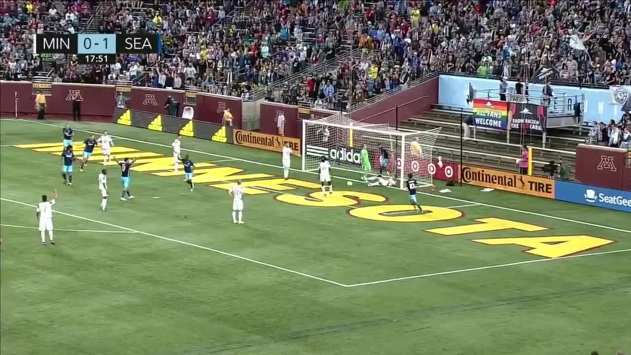 Cumpliendo con el viejo axioma del futbol “Dos cabezazos en el área termina en gol”. El experimentado delantero consigue el 2-0 de los Sounders sobre Minnesota.