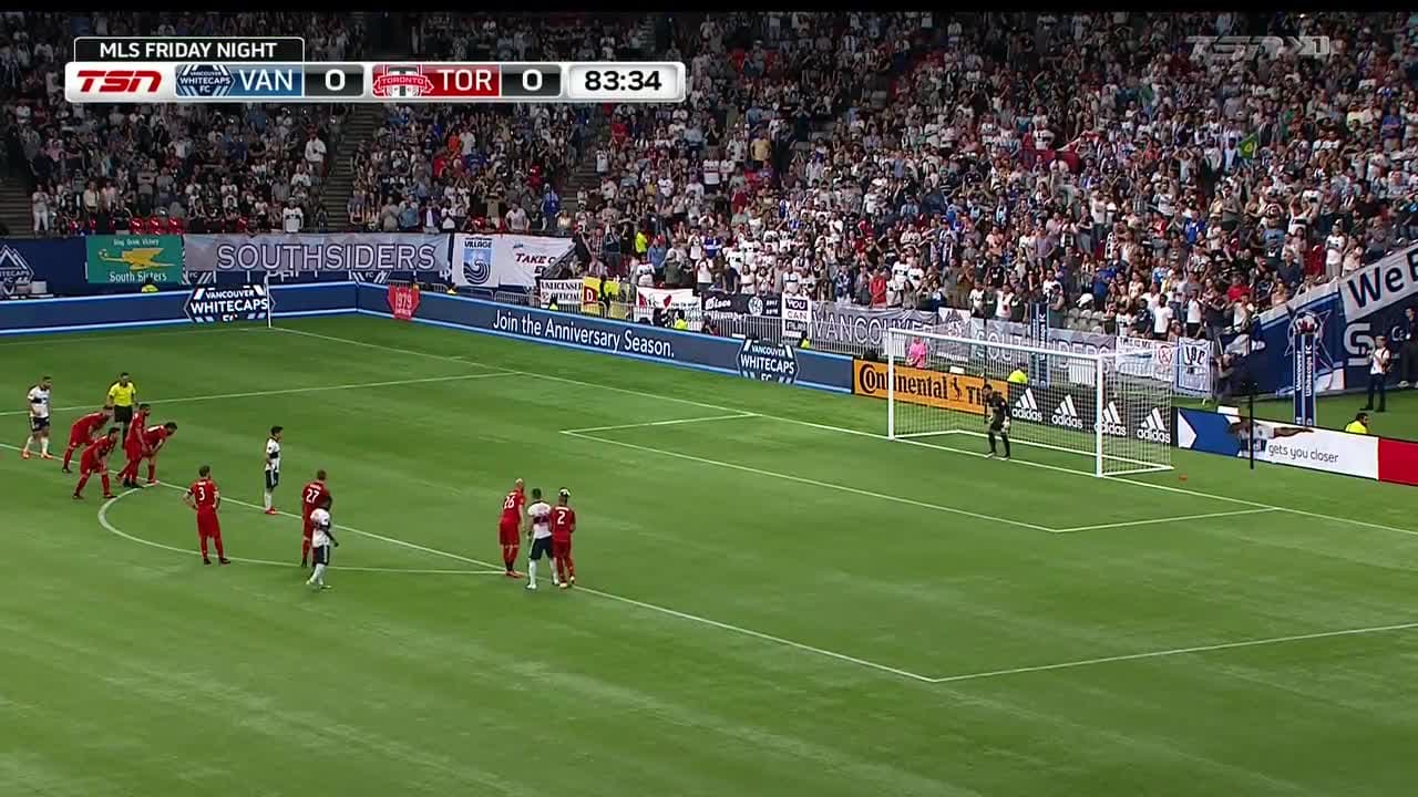 El ariete sudamericano marca desde el punto penal, el 1-0 de los Whitecaps en casa sobre Toronto FC, en el derbi canadiense