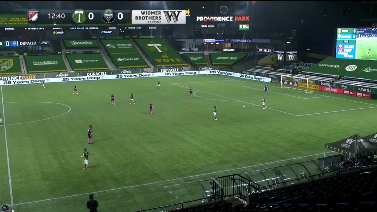 El mediocampista sudamericano toma el pase de Jeremy Ebobisse y marca el 1-0 para Portland, llegando a tres goles en la temporada