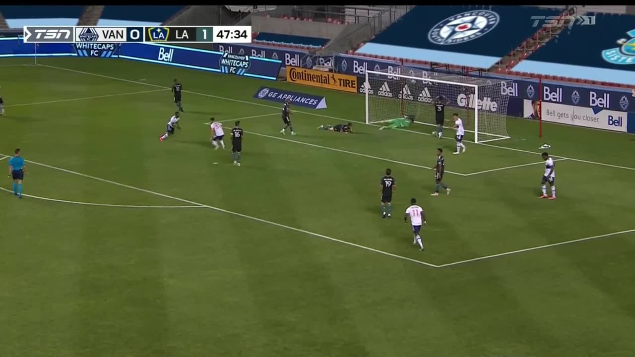 Galaxy se fue al frente con un gol de vestidor. Ante la enorme complacencia de los defensores de los Whitecaps, Víctor Vázquez le puso un centro a la medida a Rayan Raveloson. El centrocampista consiguió anotar en juegos consecutivos, y firmar su segundo en apenas tres apariciones con la camiseta del club angelino.