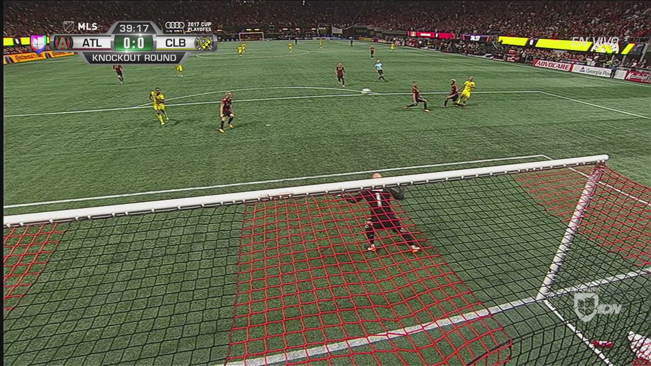 El delantero Justin Meram aprovechó un descuido de la defensa de Atlanta, disparó al arco pero su tiro pegó en el travesaño.