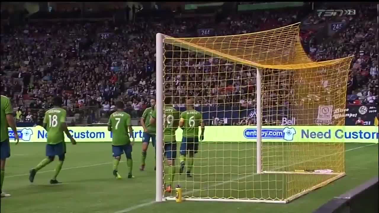 El delantero de los canadienses se eleva entre la defensa y conecta un tiro de esquina para acercar a los Whitecaps 2-1 frente a los Sounders