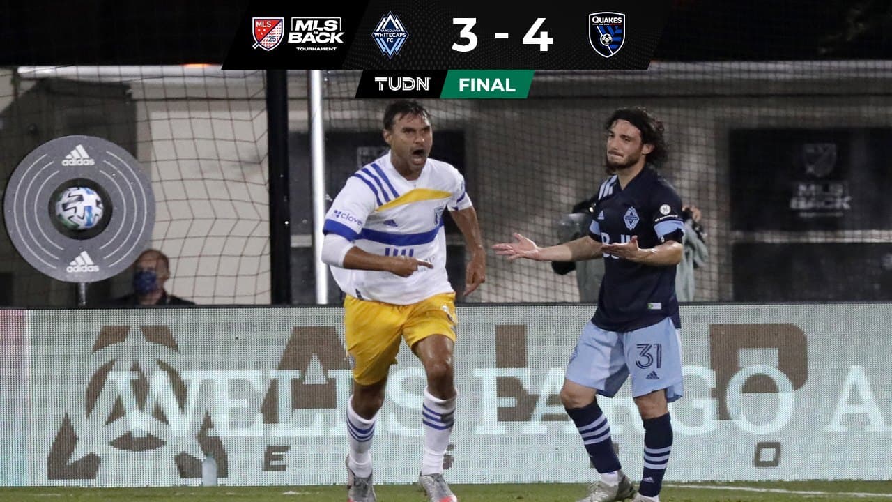Las probabilidades de revertir un 3-1 a los 59 minutos de la segunda mitad eran casi nulas, pero con gol del mexicano Osvaldo Alanís en medio de la remontada, San Jose Earthquakes de Matías Almeyda supera 4-3 a los Vancouver Whitecaps por el Grupo B del torneo MLS is Back, en el partido más trepidante en lo que va del certtamen.
