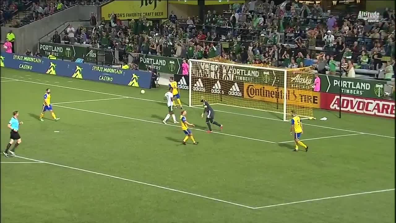 Diego Valeri ganó la marca del último defensa, disparó, pero Tim Howard estuvo atento para evitar el gol.
