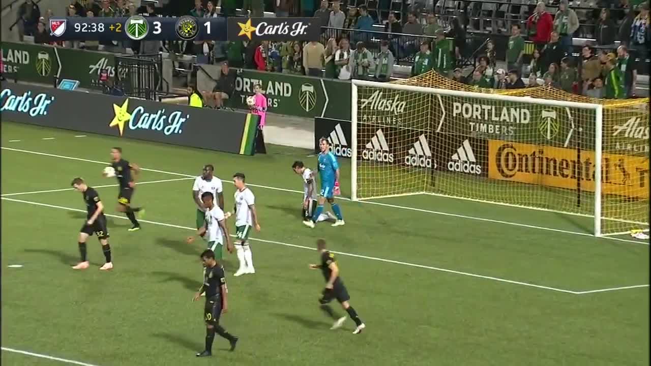 Con sublime cabezazo Niko Hansen acorta el marcador, Portland 3-2 Columbus