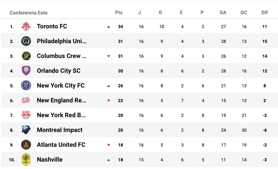 La inesperada caída de Columbus frente a Montréal Impact hizo el resto, y abrió algo de lugar para que se colara Philadelphia Union en la segunda posición, tras derrotar por 3-0 a FC Cincinnati.