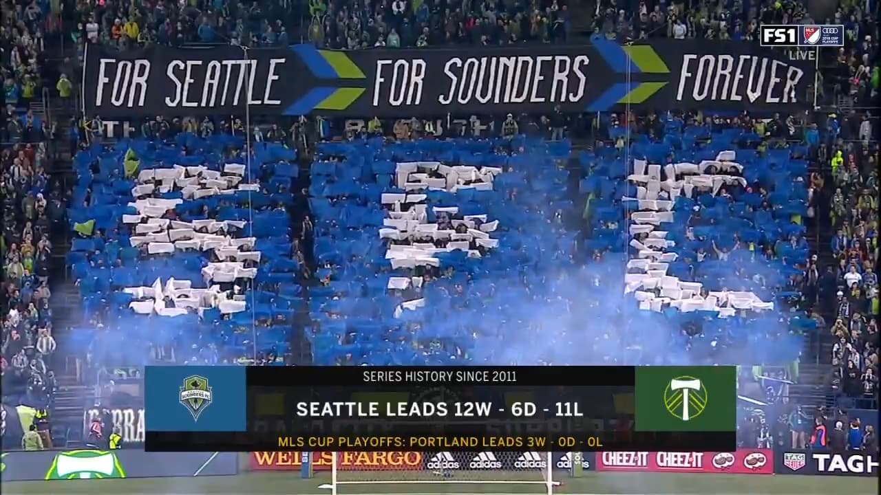 Los aficionados de Seattle recibieron a su equipo con un hermoso tifo en la salida de los equipos a la cancha de cara al partido de vuelta de las semifinales de conferencia.