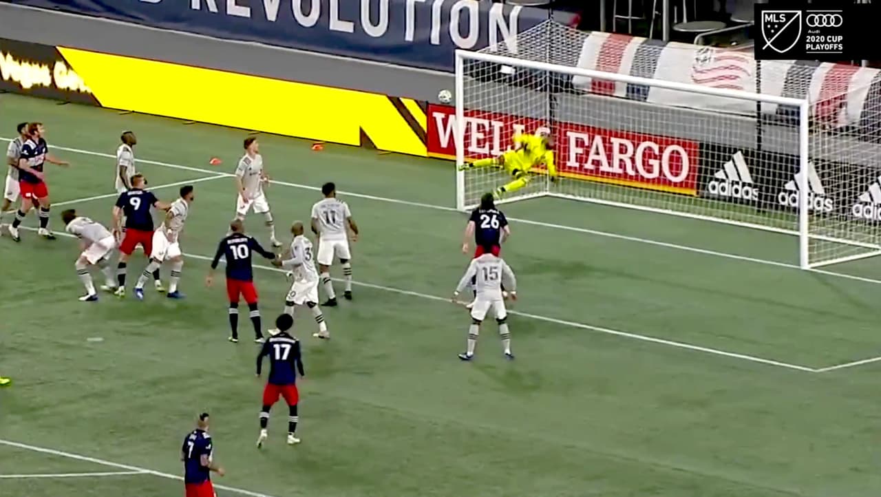 Con un milagroso manotazo Clément Diop evita el primero de New England