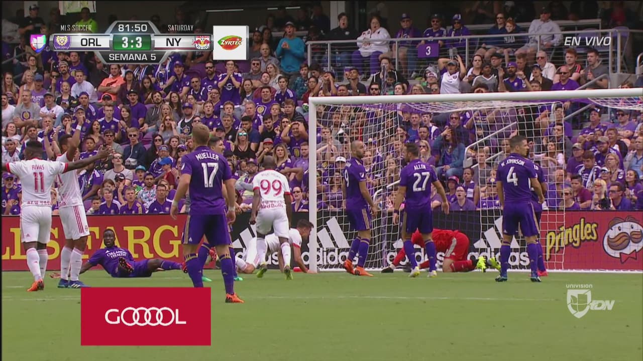 En jugada de pelota detenida el defensor estadounidense se alza y cabecea para el 3-3 en la casa del Orlando City.