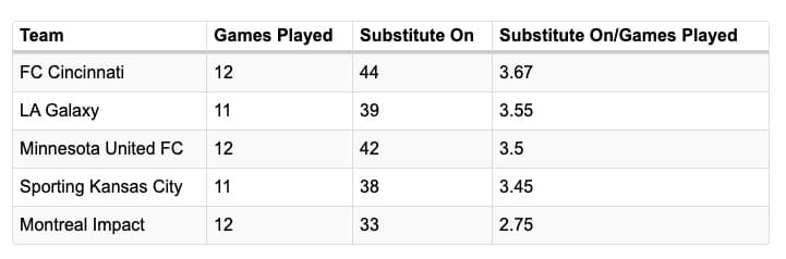 MLSsoccer.com ha hecho un interesante relevamiento sobre esta manera, teniendo en cuenta los partidos que se disputaron desde que existe la posibilidad de efectuar hasta cinco sustituciones por equipo.