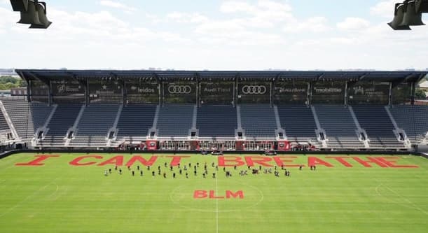 Mientras D.C. United se prepara para regresar a la actividad con entrenamientos en el Audi Field, el estadio del equipo capitalino también sirvió para expresar solidaridad con aquellos que protestan por el asesinato a manos de la policía de George Floyd y del movimiento Black Lives Matter ('Las Vidas de los Afrodescendientes Importan').